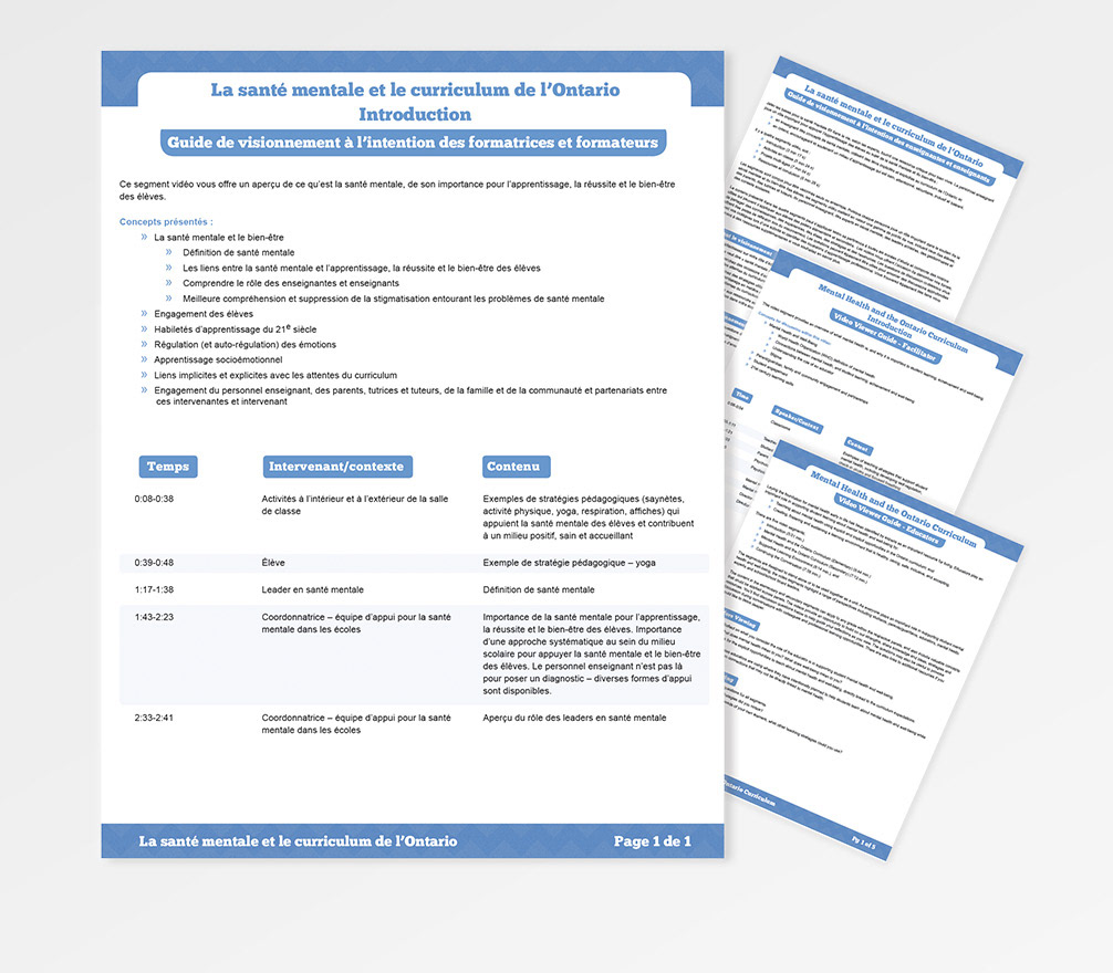 A video resource that explains the importance of laying the foundation for Mental Health in early life from the Ministry of Education for teachers, in both French and English languages